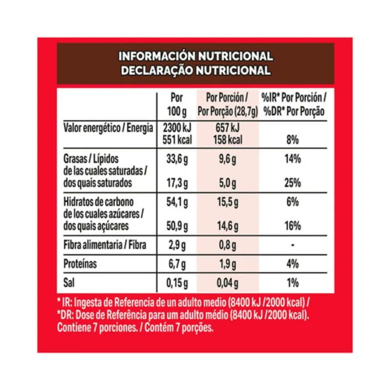 - Zucker, Kakaomasse, Kakaobutter, Milchbestandteile (Milch, Magermilchpulver, Sahne), pflanzliche Fette (Palm, Shea), Magermilchpulver, Milchfett, gefiltertes Molkenpulver, Haselnüsse, Mandeln, Glukosesirup, Weizenmehl, Milchpulver, entöltes Kakaopulver, Emulgator (Lecithine), Weizenmalzmehl, Salz, natürliche Vanillearomen, natürliches Orangenaroma, natürliche Aromen.