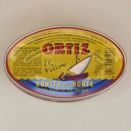 White tuna in pickled sauce: White tuna in olive oil is delicious. It is a superior type of tuna. It is canned in a juicy marinade. Our white tuna is from the brand Ortiz.