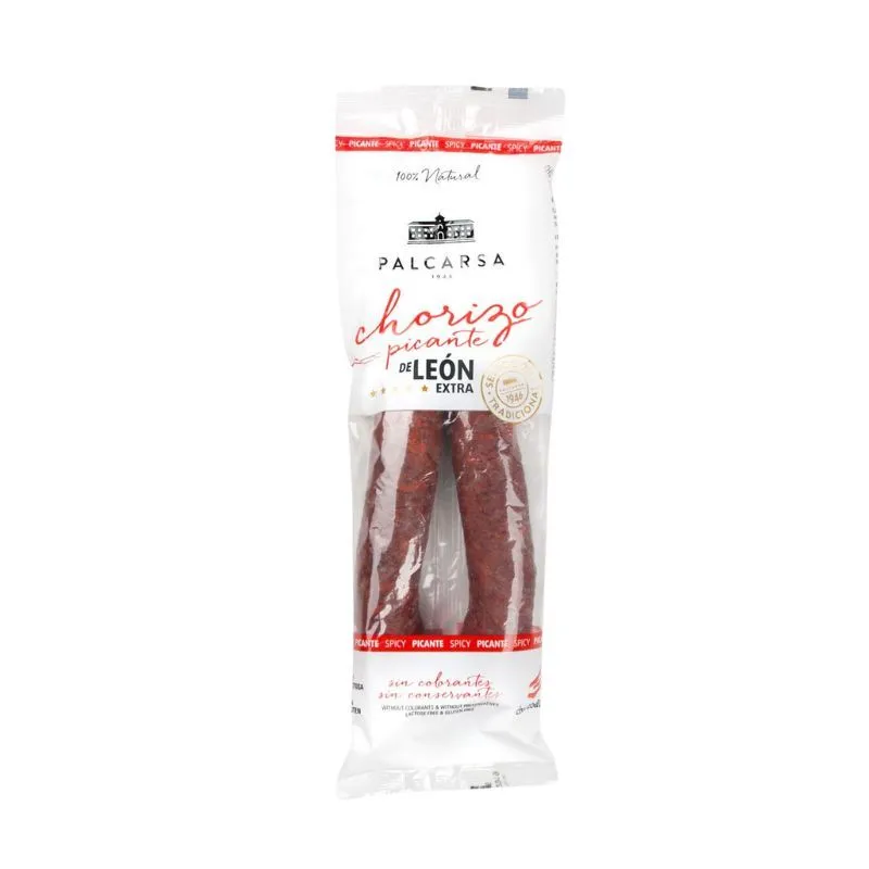 This delicious spicy chorizo from León comes from Palcarsa, is vacuum-packed and has a net weight of approximately 325 gr. It is also available in sweet format.