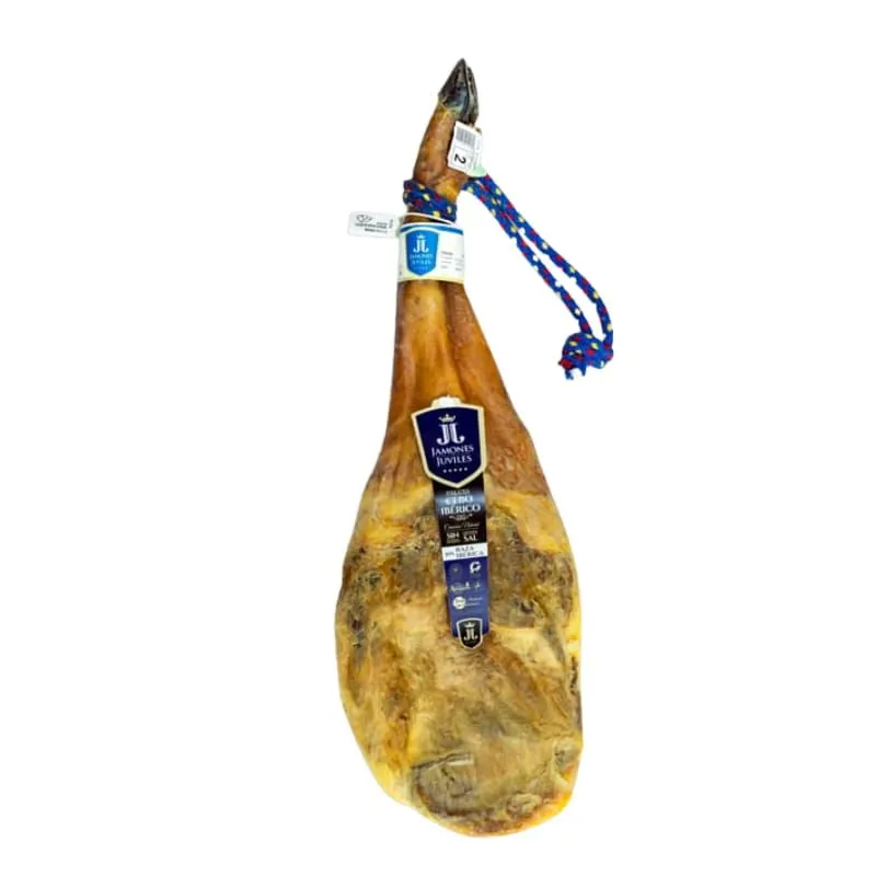 The 50% Iberian Acorn-fed Shoulder Jamones de Juviles is a piece from 50% Iberian pigs, raised under controlled conditions and fed high-quality feed. Weighing approximately between 4.5 and 5 kg, this shoulder stands out for its slow, entirely artisanal curing, lasting over two years.