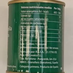 Stuffed olives come in 350 gr. format, canned and preserved in salted water. They are pitted olives stuffed with anchovy paste. They are delicious, a typical Spanish appetizer, with a lot of character and perfect for an aperitif or a snack in the middle of the afternoon. An easy to prepare snack that goes well with any appetizer.