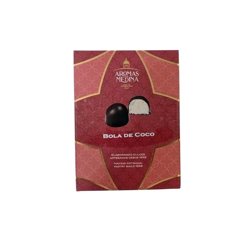 The Coconut Balls from Aromas de Medina are small treasures of Spanish artisanal pastry. Each ball is made with top-quality ingredients, combining grated coconut, sugar, fondant, egg white, and condensed milk, with a final touch of chocolate that makes them absolutely irresistible.