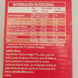 Las Galletas Fontaneda María son la representación clásica de la tradicional galleta María, con un sabor equilibrado y una textura delicada. Son perfectas para quienes buscan una opción sencilla, pero sabrosa, que se puede combinar con leche, infusiones o café. Su bajo contenido en grasas y su ligereza las hacen una elección habitual para quienes cuidan su alimentación sin renunciar al placer de un buen dulce. Estas galletas se caracterizan por su consistencia uniforme y su sabor suave que no empalaga, ideal para disfrutar a cualquier hora. -