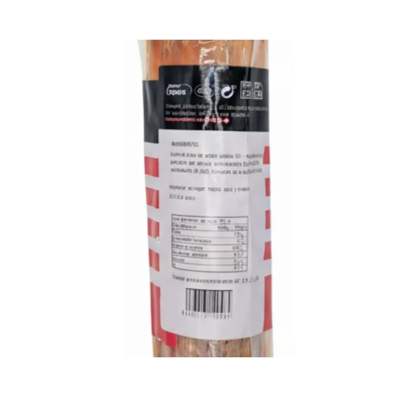 - Lomo de cerdo ibérico, sal, pimentón, azúcar, dextrosa, antioxidante (E-300, E-331iii), conservadores (E-252, E-250)-