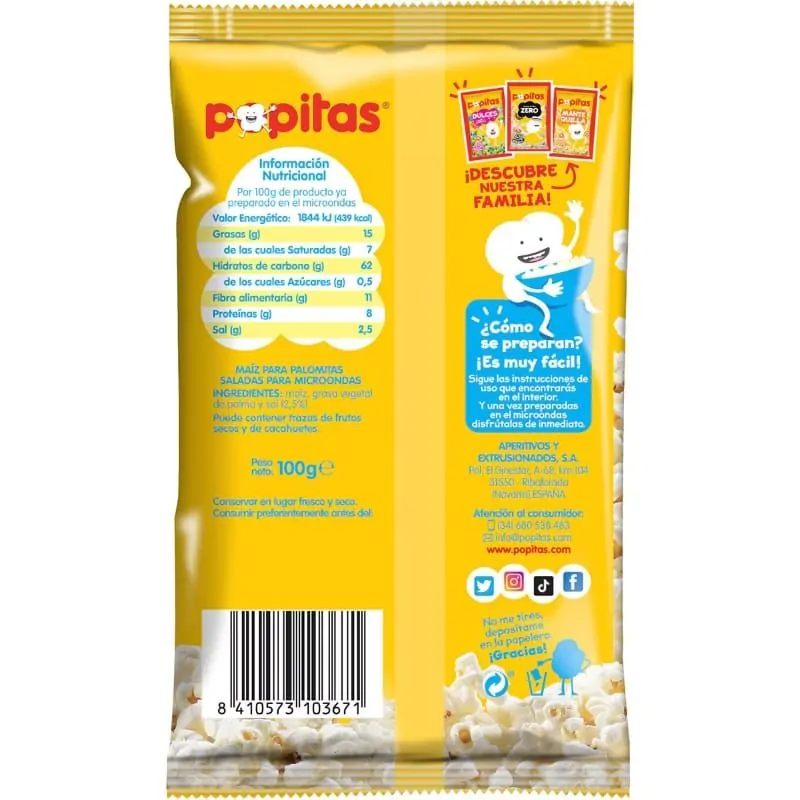Las Popitas destacan por su sabor equilibrado y su textura extra crujiente, ideales tanto para una noche de sofá como para compartir con amigos o familia. No resultan pesadas ni excesivamente saladas, lo que hace que puedas disfrutarlas sin remordimientos. Además, su preparación es tan sencilla que no necesitas ser un experto en la cocina: meter la bolsa en el microondas, esperar a que exploten… y listo. Así de fácil.