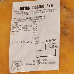 - Épaule de porc Duroc (Duroc 50%), Sel, Sucre, Conservateurs (E-252, E-250), Correcteur d'acidité E-331 (iii), Antioxydant E-301.