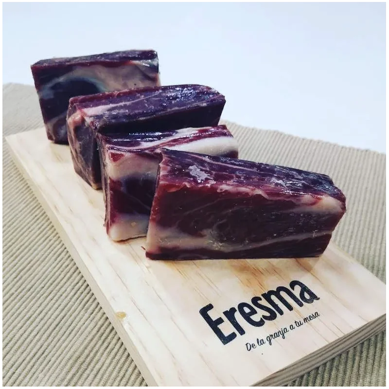 Le jambon ibérique est livré propre, sans couenne et poli, en un ou plusieurs cubes. Le jambon ibérique en morceaus est fabriqué par jambones ibériques de cebo de la marque Copese.