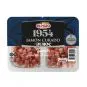 Ils sont élaborés à partir de jambon de porc de première qualité, salé et conservé naturellement, ce qui garantit une saveur authentique, intense et juteuse. Ces dés sont très polyvalents : parfaits comme en-cas, dans les omelettes, pizzas, salades ou même dans des recettes plus élaborées. Leur texture et leur goût concentré permettent qu’en seulement quelques cuillères, n’importe quel plat se transforme en une expérience gastronomique.
