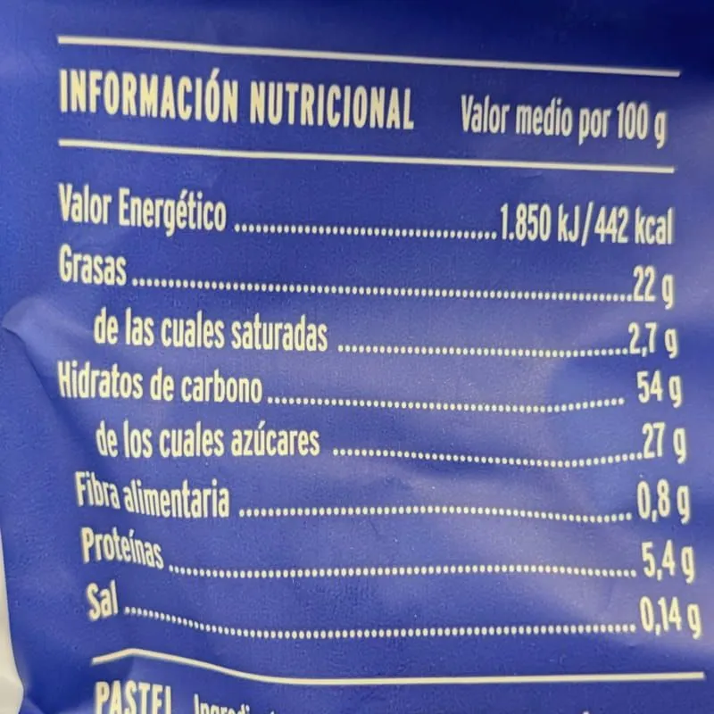 - Farine de blé (26%), sucre, huile végétale (tournesol) (19%), œuf liquide (14%), eau, agents humectants (glycérine, sorbitols), agents levants (diphosphates, carbonates de sodium), poudre de lactosérum, stabilisant (gomme xanthane).