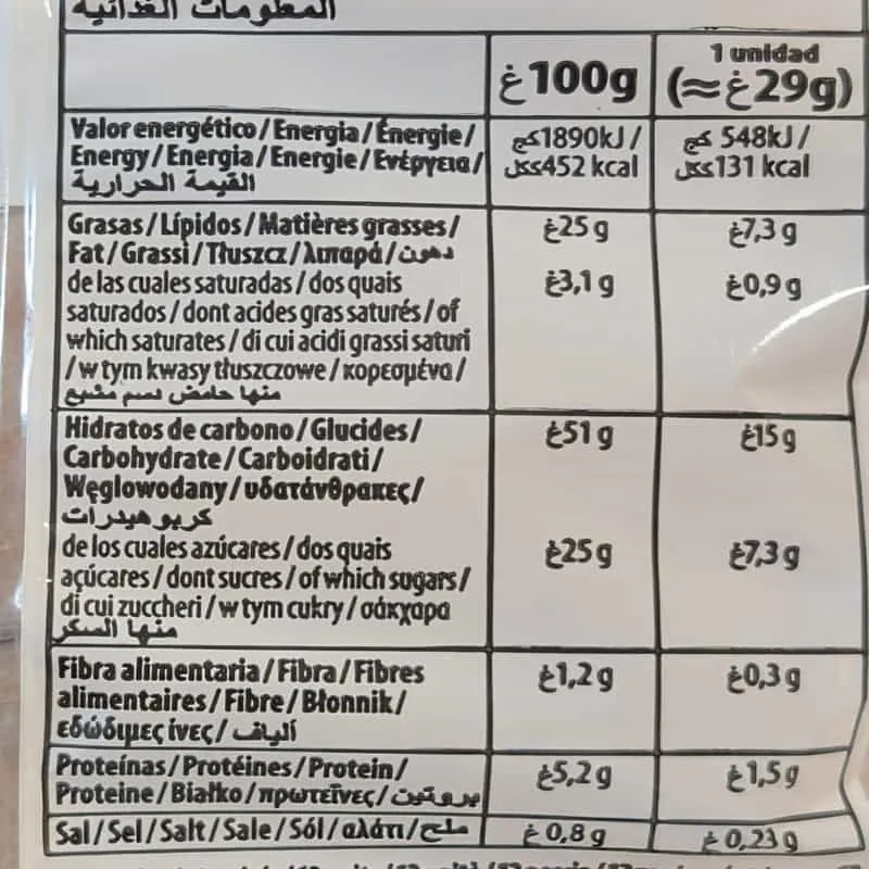 - Farine de blé, huiles végétales (tournesol, soja) en proportions variables, sucre, œuf (17 %), humectant : sorbitol, blanc d'œuf (3 %), agents levants : carbonates de sodium et acide tartrique [L()-], sirop de glucose-fructose, arôme et sel.