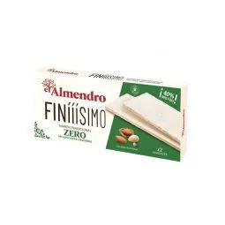Le Turrón Dur Zéro Finísimo est la version la plus légère du turrón dur classique d’El Almendro, celui de toujours, mais avec une recette adaptée à ceux qui veulent prendre soin d’eux sans renoncer au goût. Élaboré avec des amandes sélectionnées et édulcoré au maltitol et au sorbitol, il atteint cet équilibre parfait entre douceur et naturalité.