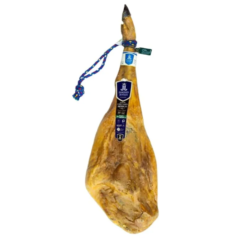 De Juviles Cebo Campo Ham 50% Iberico is geen gewone ham. We hebben het over een 100% natuurlijk en ambachtelijk product, met meer dan twee jaar rijping die zorgen voor een intense en authentieke smaak.