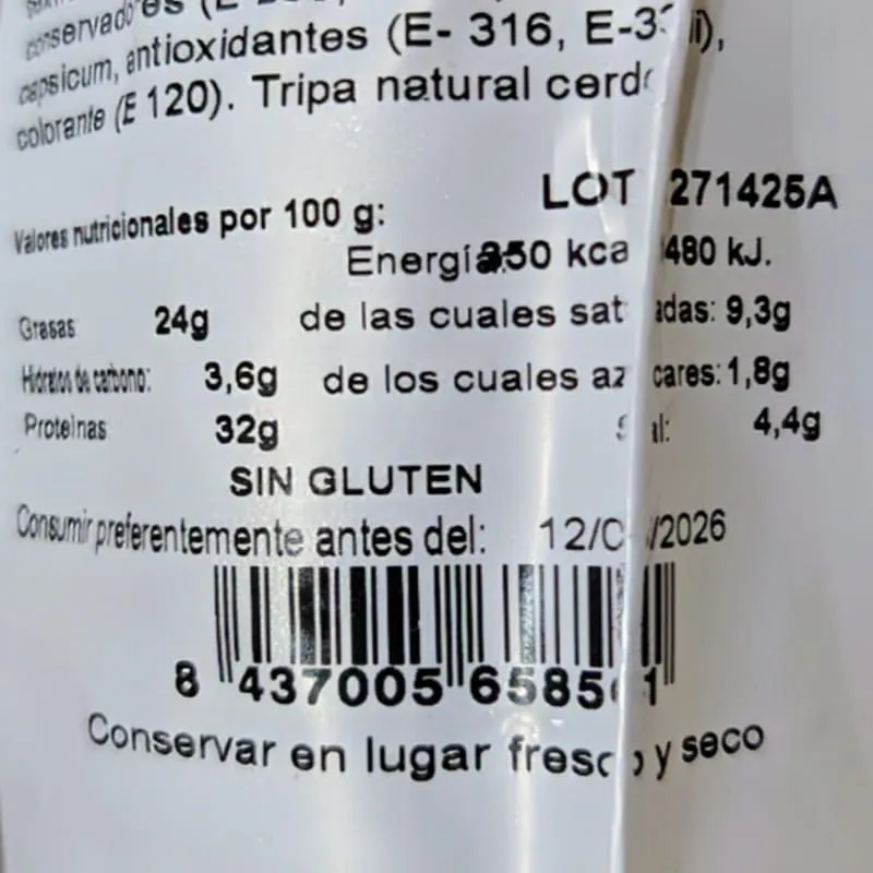 Deze chorizo is geschikt voor coeliakie, omdat het geen gluten bevat.