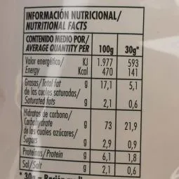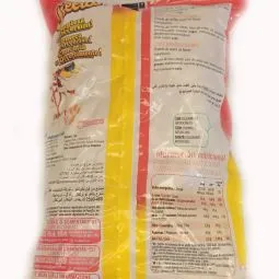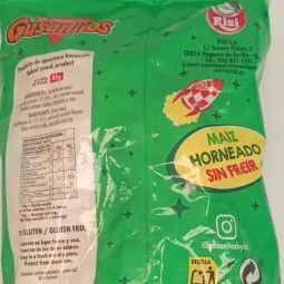 - Maïsgries (68%), zonnebloemolie (29%), aroma’s [aromastoffen, natuurlijke aromastoffen, wei (bevat melk en melkbestanddelen), smaakversterker (mononatriumglutamaat E-621) en zout].