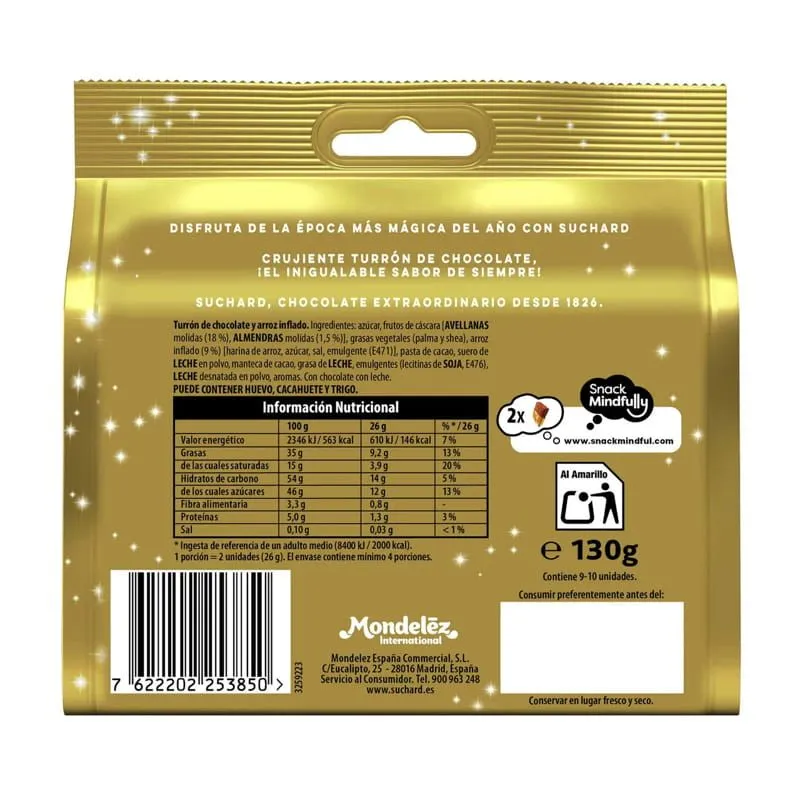 De suchard het is de favoriete kerstsnoep van alle spanjaarden, vooral van de kleintjes. Een andere snor, gemaakt van chocolade en opgeblazen rijst. Dat is het . Dit nieuwe formaat biedt 10 individuele stukjes Suchardnoten en in een cadeaubon.